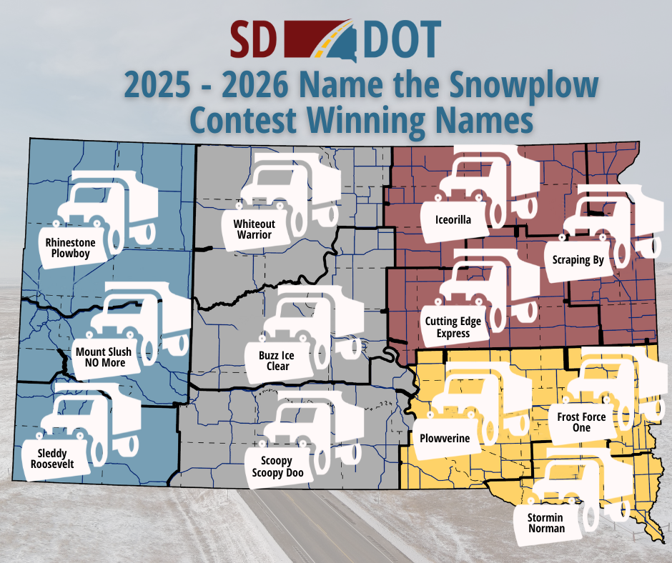 The South Dakota Department of Transportation (SDDOT) is excited to announce another round of outstanding winners in the sixth annual snowplow naming contest. Read MoreYankton County Highways Scheduled for Closure for James River Bridge Replacement Project