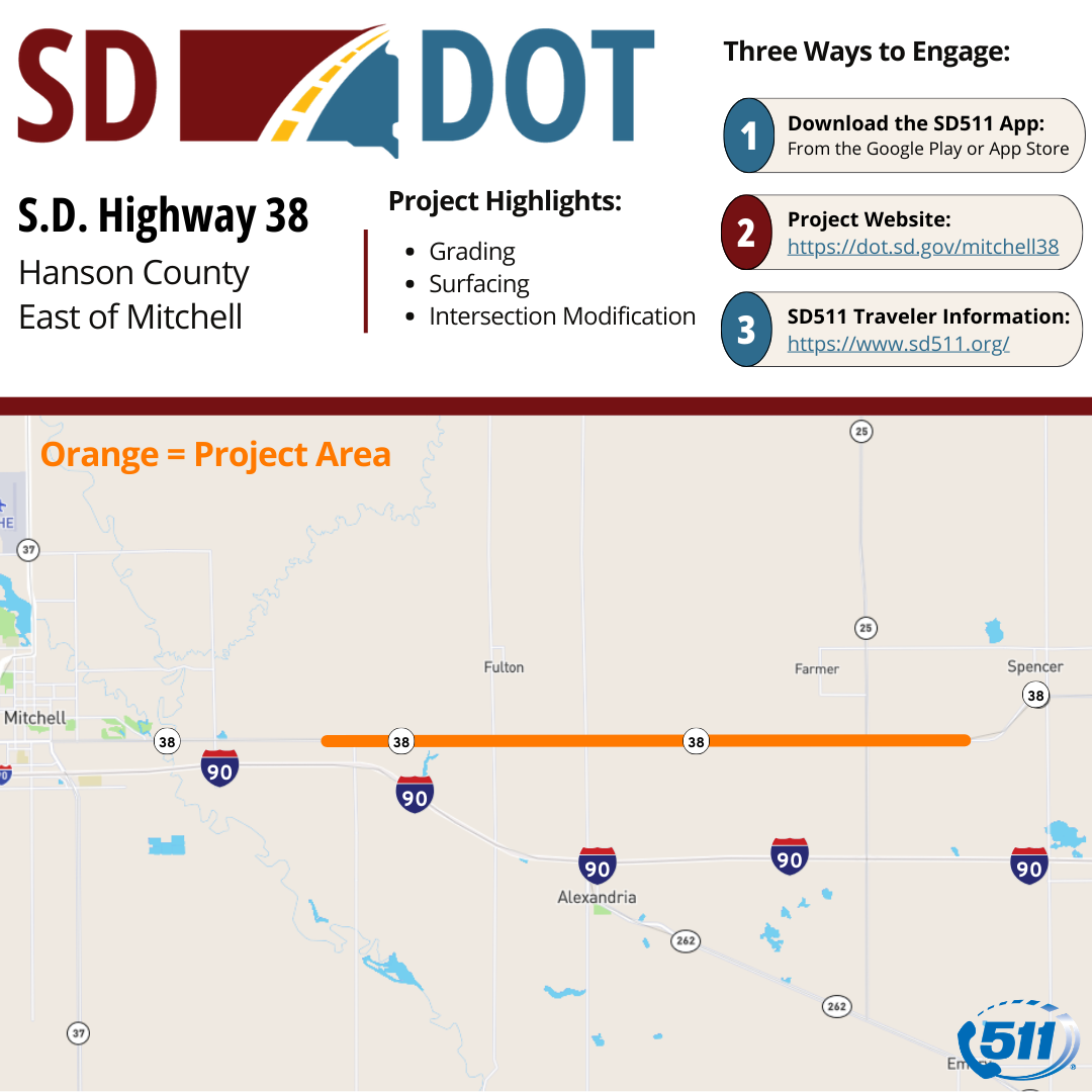 S.D. Highway 38 four miles east of Mitchell for 12 miles