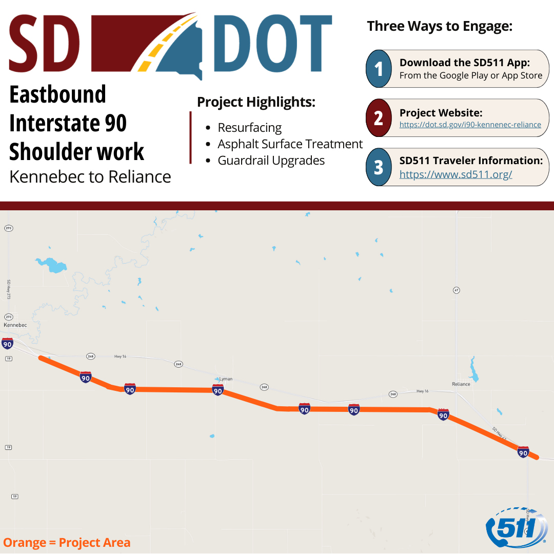 - Interstate 90 Eastbound lanes - From Kennebec to East of Reliance